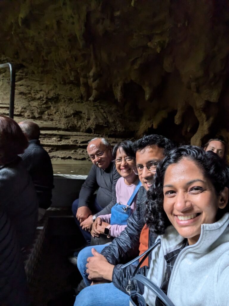 The highlight was the Waitomo Glowworm Caves. They took us through a dark cave in a boat and bioluminescent worms were above us giving an LED effect, gorgeous! The drives all around the North Island was easy and serene. We went to Rotorua to see hot springs and enjoyed maori culture. We ended our north island tour in Wellington and took a flight from there to Queenstown.